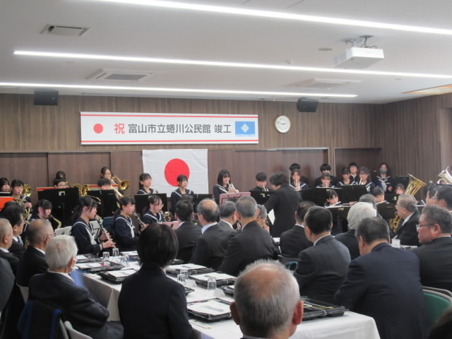 2026年2月21日(土) 【竣工祝賀会】 新しい富山市立蜷川公民館が完成し竣工祭神事、竣工式、竣工祝賀会が行われました。 藤井市長をはじめ大勢の方にご参加いただき、待望の新しい施設が蜷川地域の活動拠点としてスタートしました。 また当日は、赤田獅子舞保存会の獅子舞披露や堀川中学校吹奏楽部のみなさんがお祝いの演奏にきてくださいました。 新しい施設には、中庭を囲むように、公民館(地区センター)、児童館、図書館、健全育成室(しろがね子ども会)の4つの機能が一つになった施設となっています。 (蜷川自治振興会) |